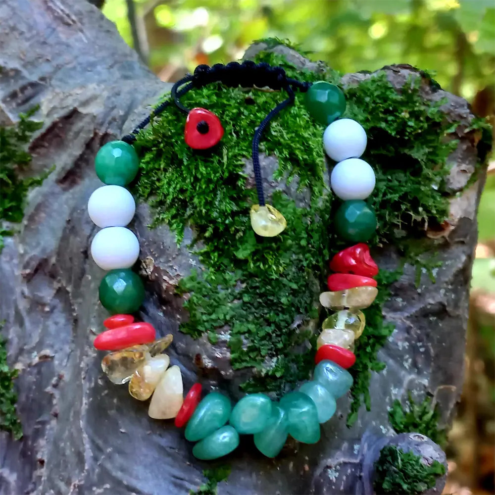 آونتورین, اونیکس سفید, جید سبز, سیترین, مرجان
